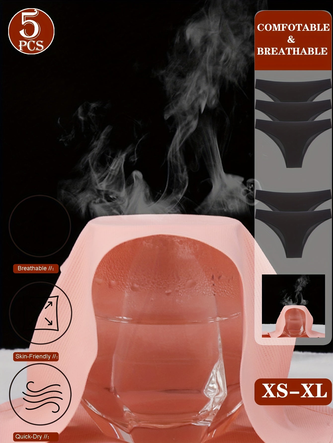 5pcs Women'S Seamless Bikini Underwear - Breathable, Quick-Dry, Comfort Fit, Low-Rise, Solid, 5 Styles for Everyday & Special Occasions, Bikini Bottoms, Everyday Underwear, Minimalist Design, Smooth Texture