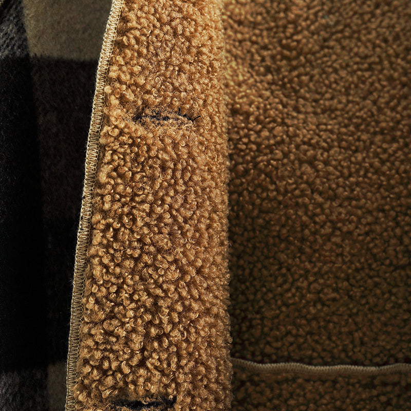 Boys' Long Sleeve Plaid Fleece-Lined Jacket with Button Front & Pockets - Cozy Fall/Winter Warmth, Casual Cardigan Collar, Brown/ Tartan Pattern, Machine Washable For Outdoor Play & Casual Attire, Winter Jacket For Boys, Fall