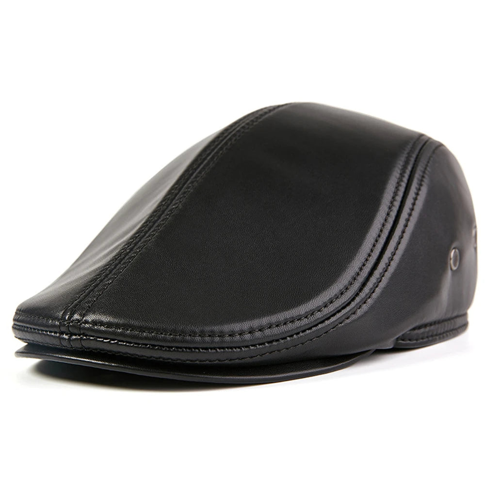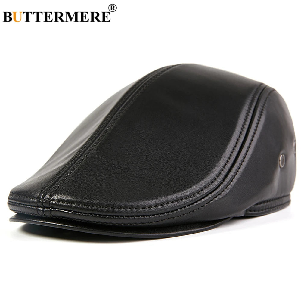 BUTTERMERE Men Flat Cap Sheepskin Real Leather Cap Male Royal Blue Autumn Winer Earflaps Men's Duckbill Ivy Cap
