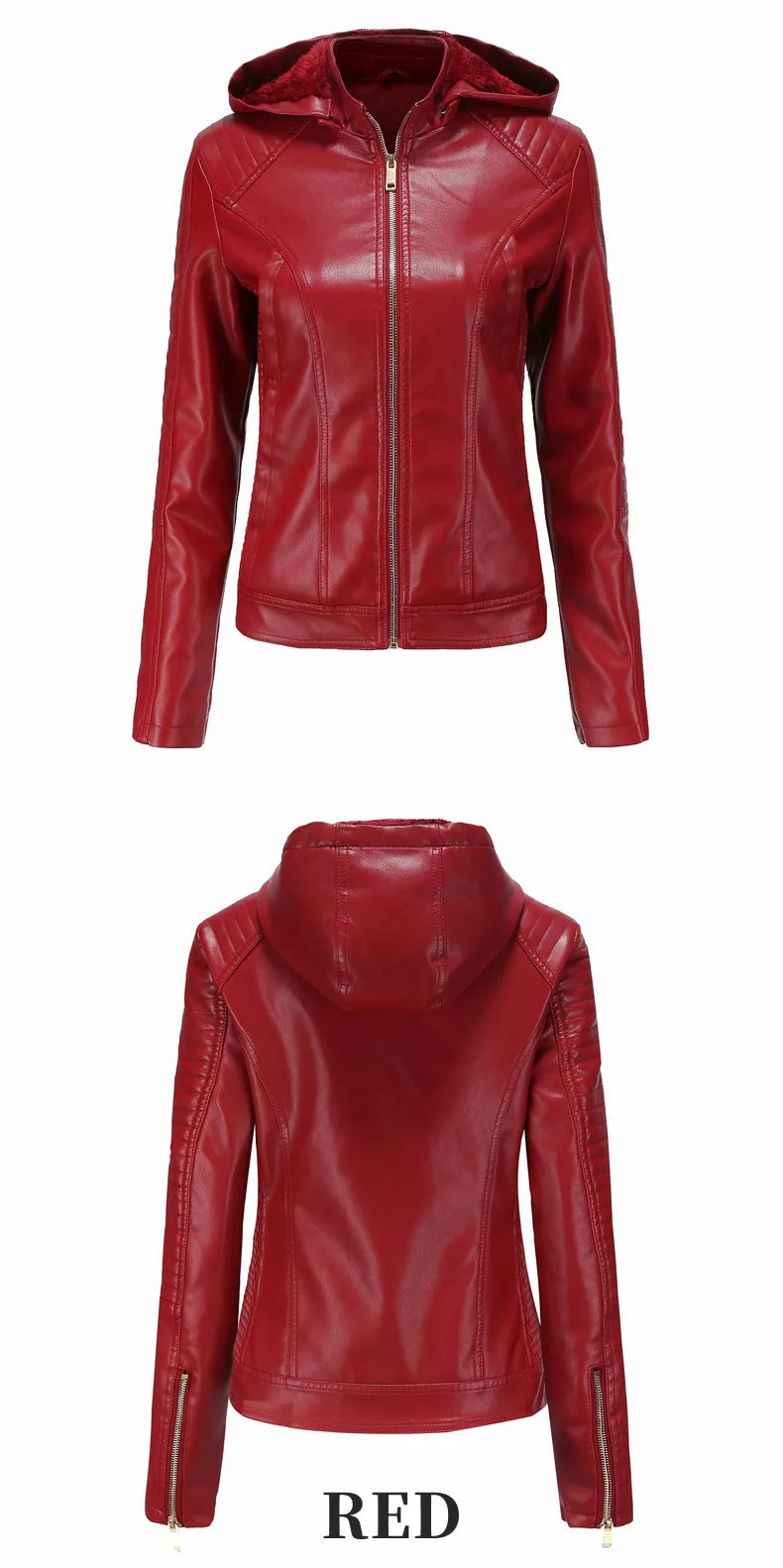 Faux Leather Women Coat Hooded Full Sleeve Slim Fit Solid Sexy Regular Jackets Zipper Casual Splice Coats Thick Warm Jacket