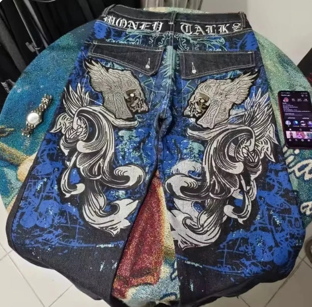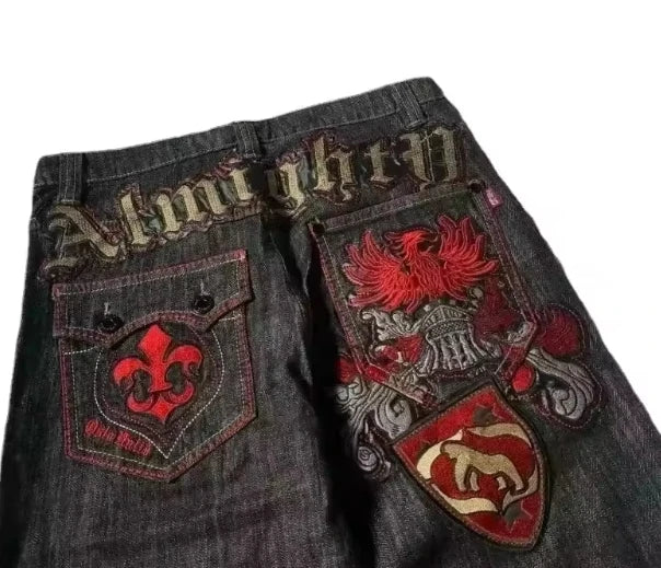 Jeans letter embroidered black loose trousers Couple fashion retro new athlete street clothing Y2K Harajuku street wear trousers