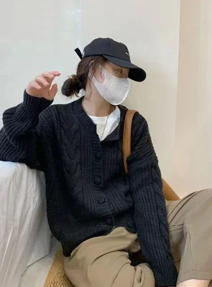 Ladies Sweaters Winter Button Kawaii Knitted Top For Women Yellow Cute Cardigan Designer Y2k Fashion Korea Korean Luxury Jumper