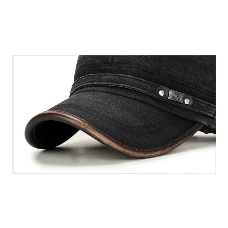 Leather Brim Washed Distressed Cotton Adjustable Military School Flat Cap Sun Hat Trucker Caps Dad Hats