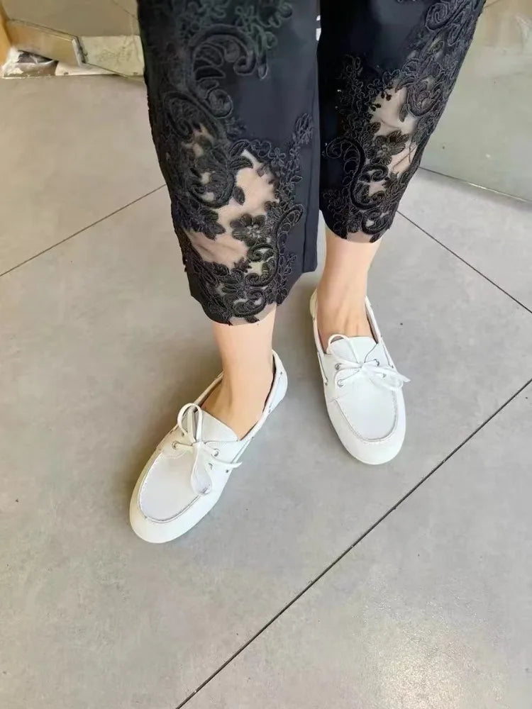 Leather Shoes for Women 2025 Spring and Autumn Sheepskin Worn Dirty Tied Soft Soled Loafer Shoes Retro One Foot Women's Shoe
