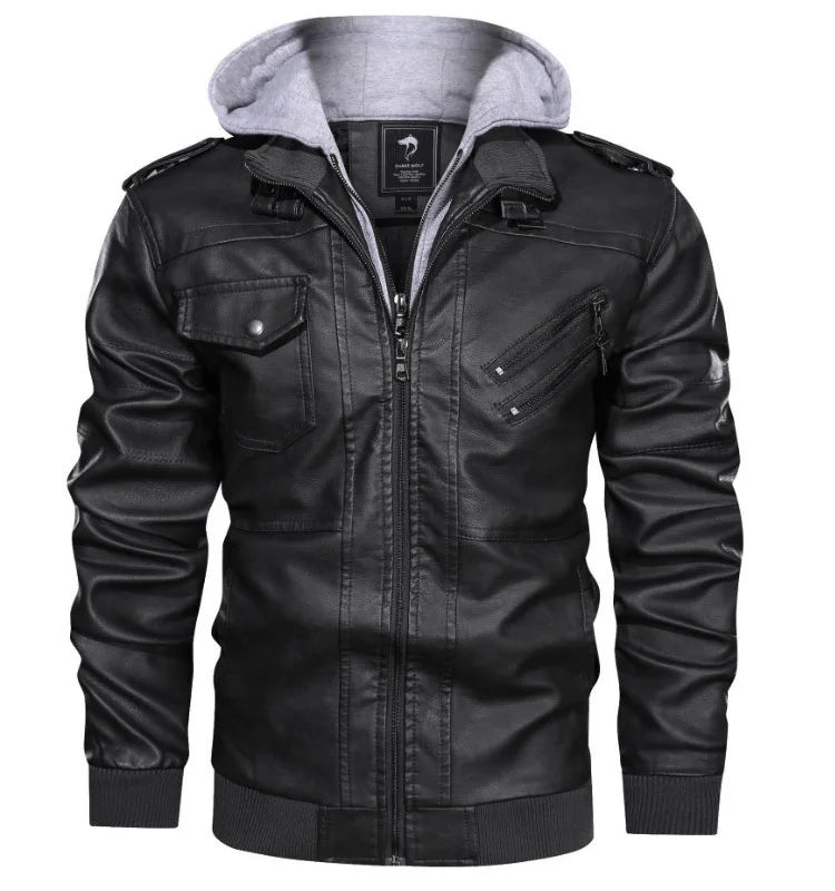 Men Leather Jacket Warm Autumn Winter Windbreaker Overcoat PU Biker Jacket Coat With Hood Fashion Casual Jacket Male Clothes
