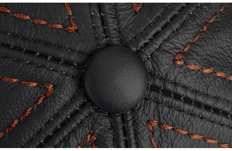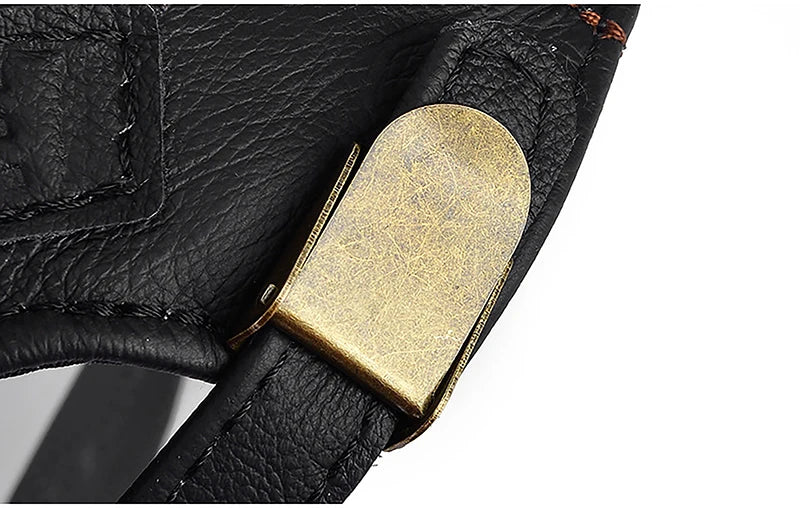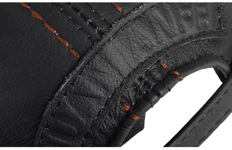 Men Real Cowhide Leather Earlap Caps Male Fall Winter 100% Real Cow Leather Hats New Casual Real Leather Outdoor Baseball Cap
