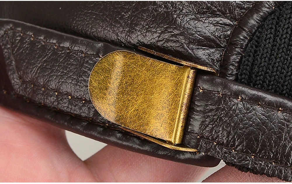 Men's 2025 Casual Real Leather Earflap Cap Men Real Cowhide Leather Caps Male Fall Winter Genuine Real Cow Leather Baseball Hats