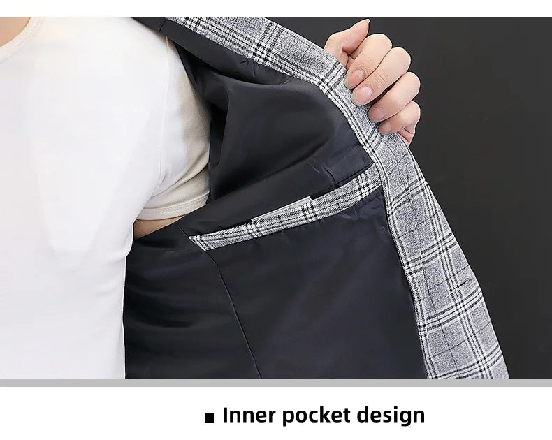 Men's British Style Checkered Suit Casual High-End Spring Autumn Small Plankton Design Handsome Coat