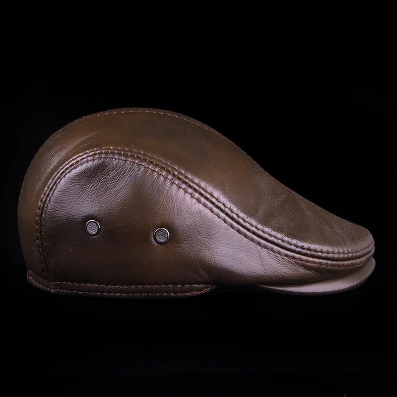 Men's Genuine Leather Baseball Cap Premium Cowhide Autumn/Winter New Style Haining Sourced with Ear Protection for Outdoor Use