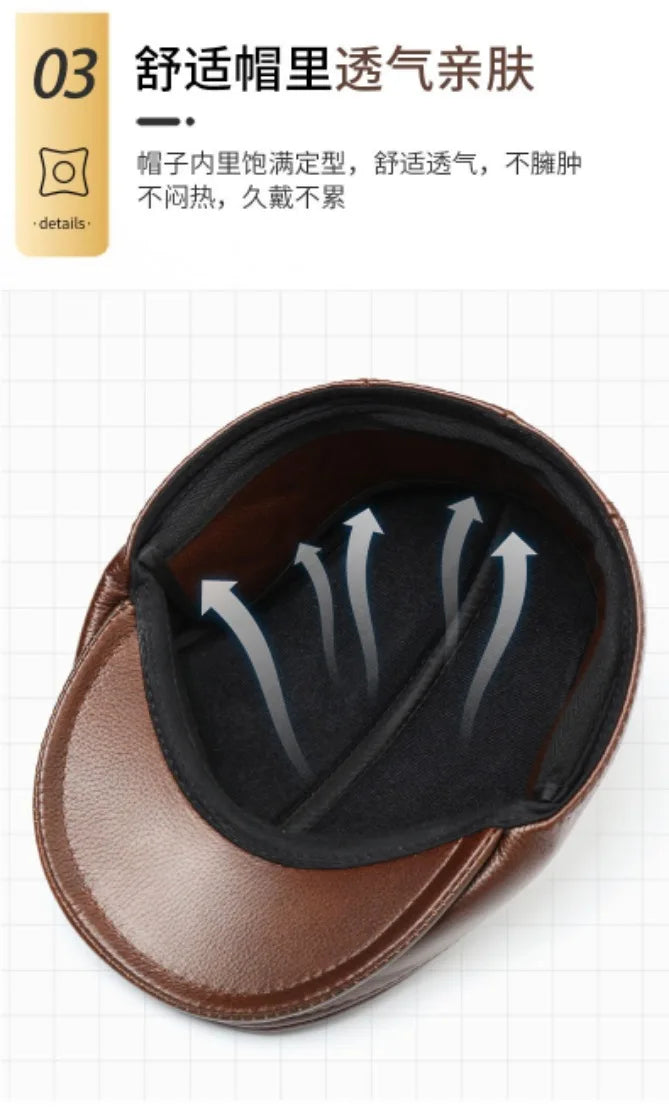 Men's Genuine Leather Hat Vintage Classic Thicker Warm Cowhide Leather Berets With Ears Snapback Cap Fashion Cap Gifts for Dad