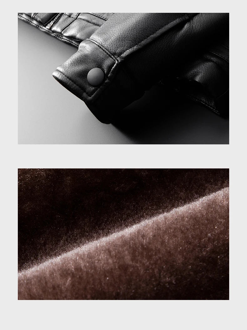 Men's Leather Jacket Winter Fleece Motorcycle Faux Leather Jacket Thick Warm Windbreaker Ropa De Hombre Slim Motorbiker Coat Men