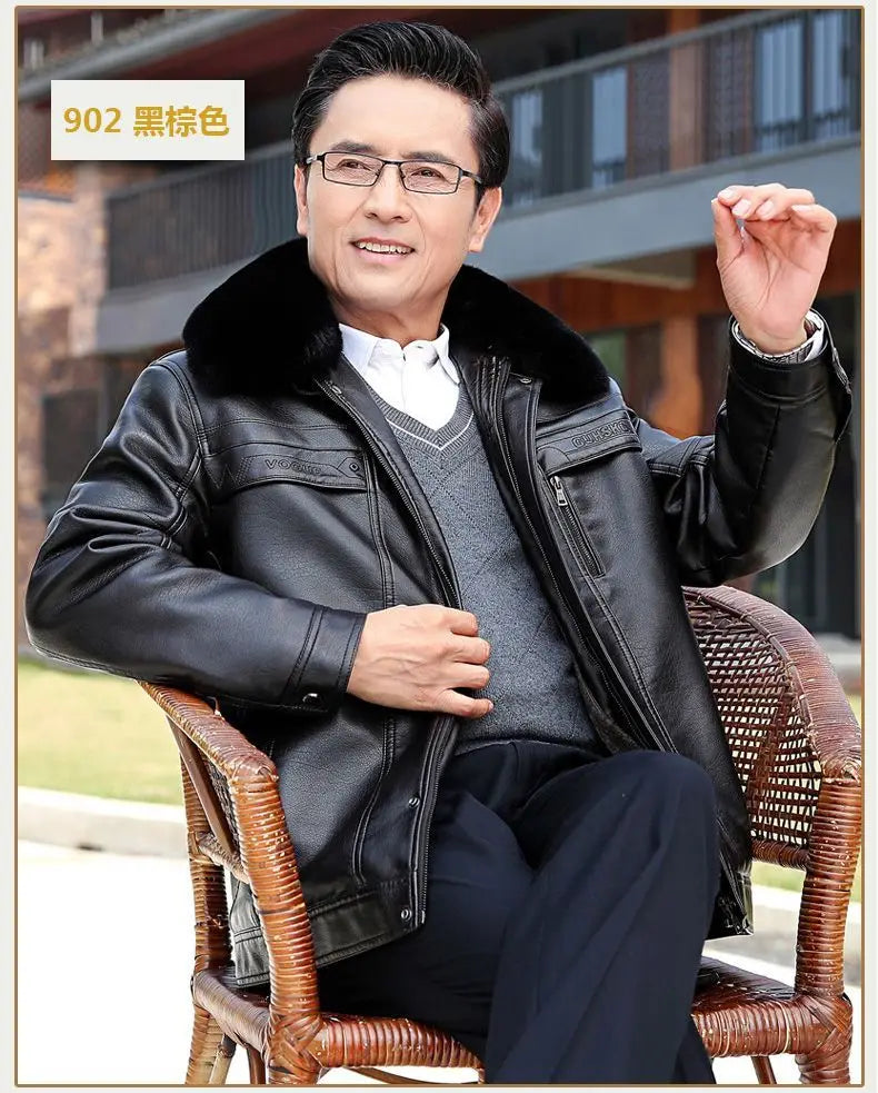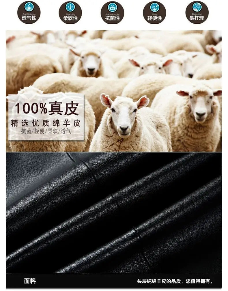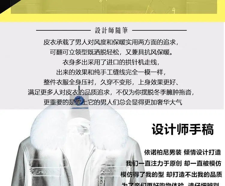 Natural Leather Jacket For Men Fur Thick Loose Plus Velvet Winter Black Leather Coats Male Sheepskin Coat Man With Fur Collar