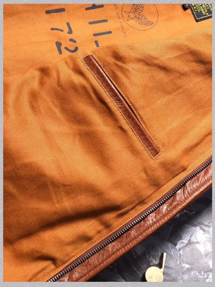 New Classical A-2 Oil Wax Cowhide Men's Genuine Leather Jacket Luxury Brown Excape Bomber Rider Motorcycle Real Leather Coats