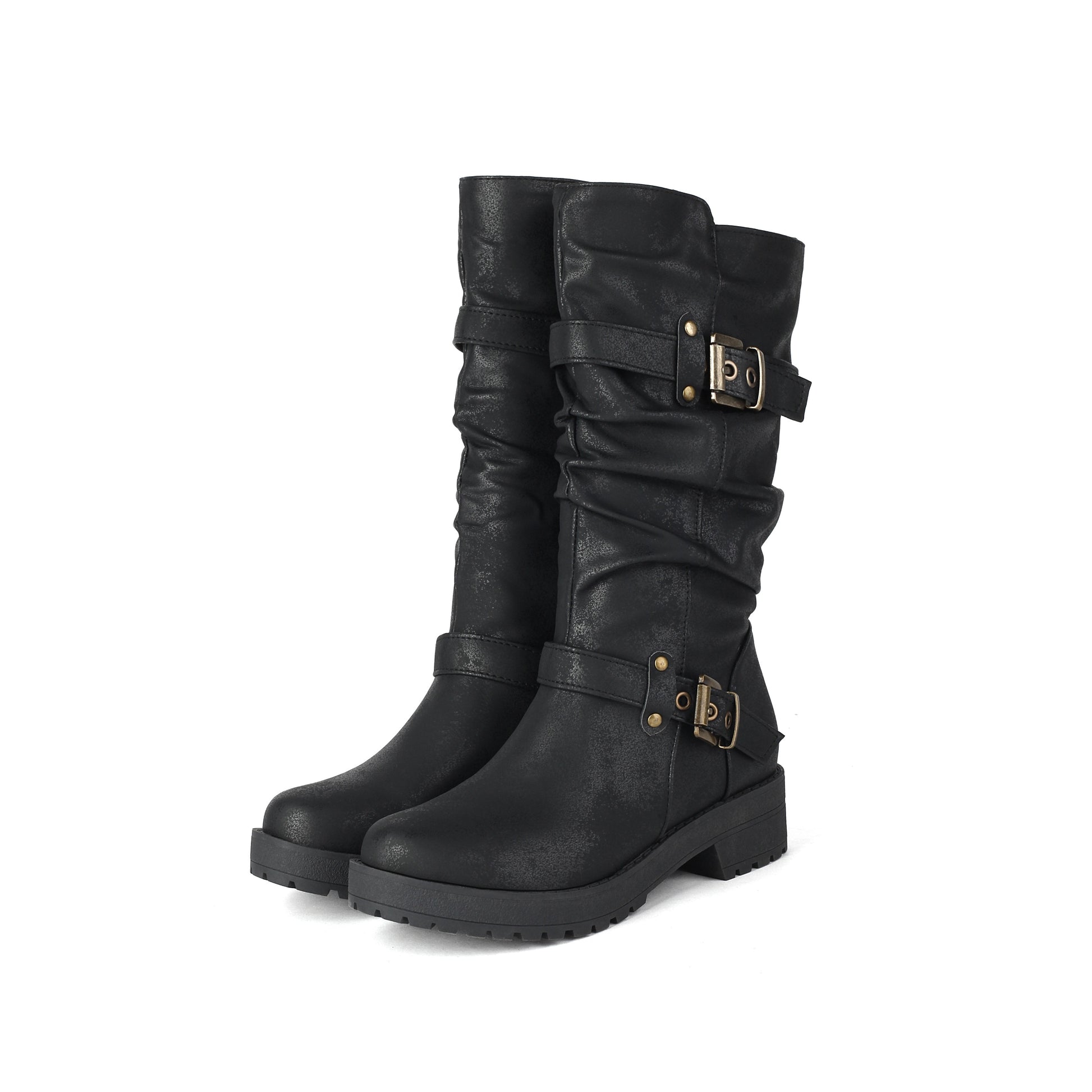 Stylish Retro Mid-Calf Boots - Women's Faux Suede, Fleece Lined, Low Heel, Zipper Closure Winter Boots for Cold Weather - Perfect for Casual Outings
