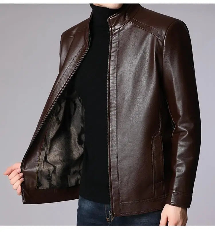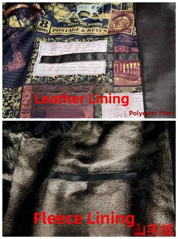 Warmth Thiened Real Leather Jaet Men's Casual Busin Sle eepskin Coat Dad Coat Loose Fit Winter Outerwear