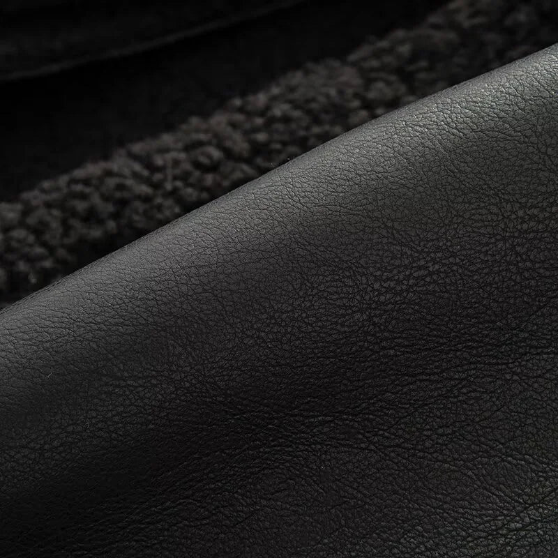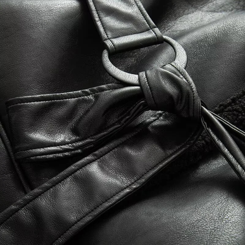 Women's Coat 2025 Autumn New Style Black Long-Sleeve Leather and Fur Integrated Coat with Belt High-End Outerwear Elegant