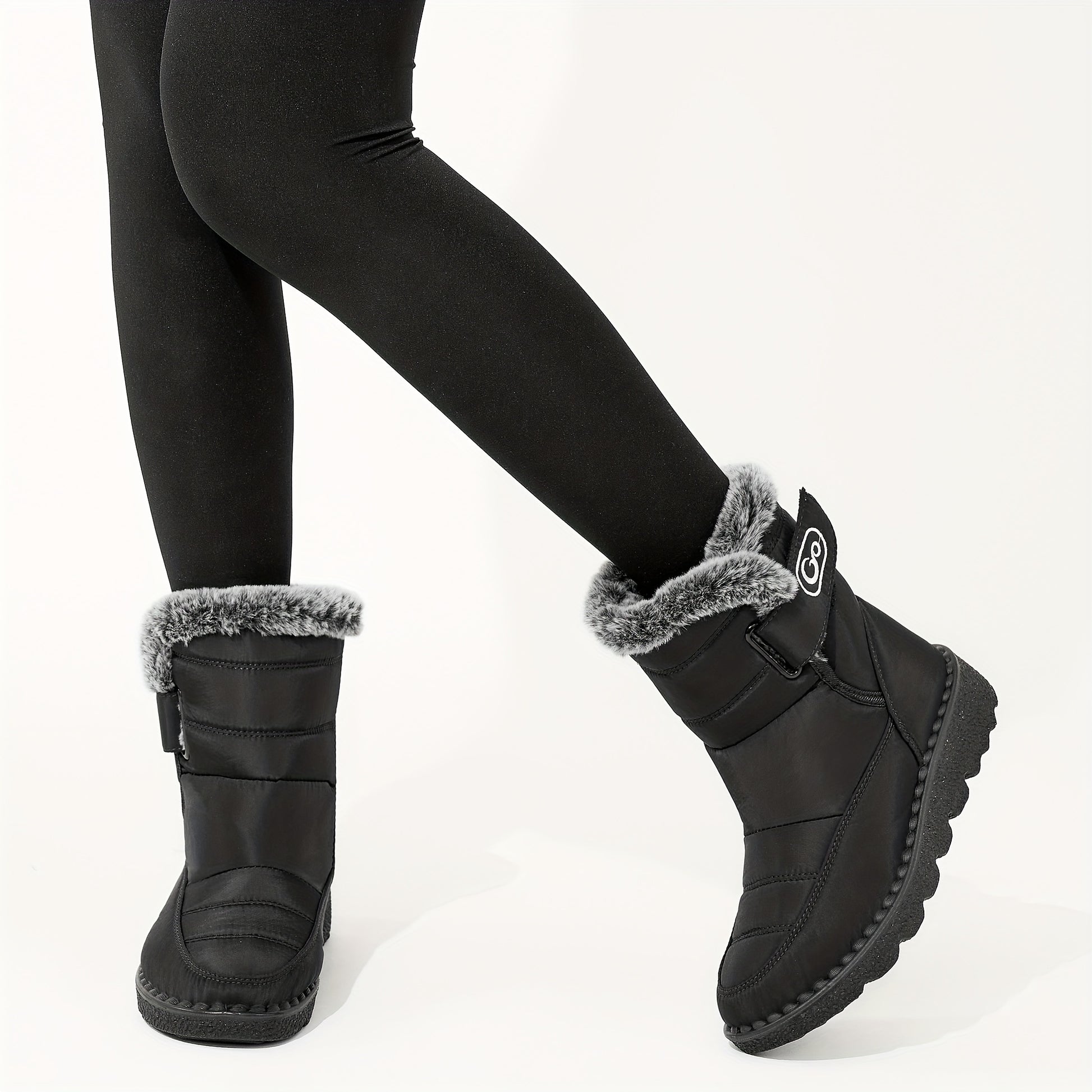 Women's Warm Solid Color Boots, Fashion Plush Lined Winter Boots, Women's Comfortable Boots